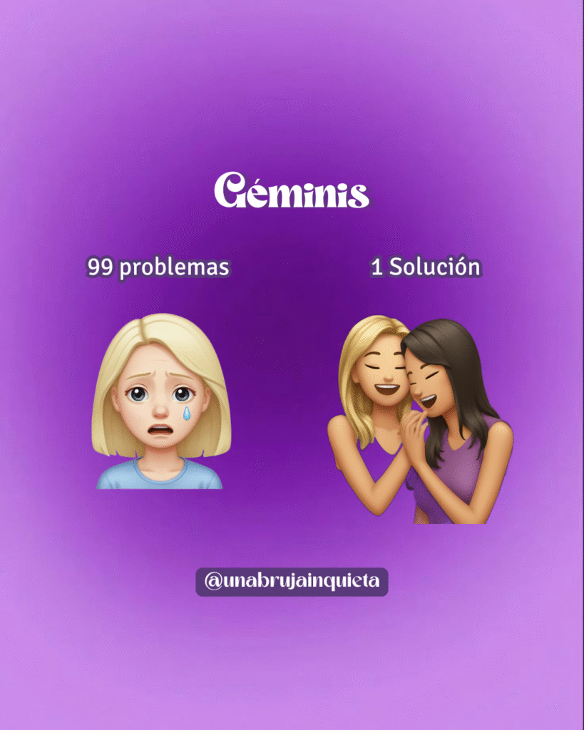 Géminis necesita hablarlo todo. Soltar ideas, contar lo que pasó, reírse y escuchar también. Sus amigas son su mejor medicina, porque en la conversación encuentra perspectiva y, de paso, el humor que le devuelve la calma.
