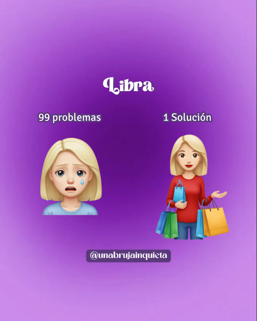 Para Libra, no hay nada como perderse entre vitrinas, probarse algo nuevo o llevarse ese detalle que le levanta el ánimo. Comprar es su manera de recuperar el equilibrio y recordarse que merece lo bonito.