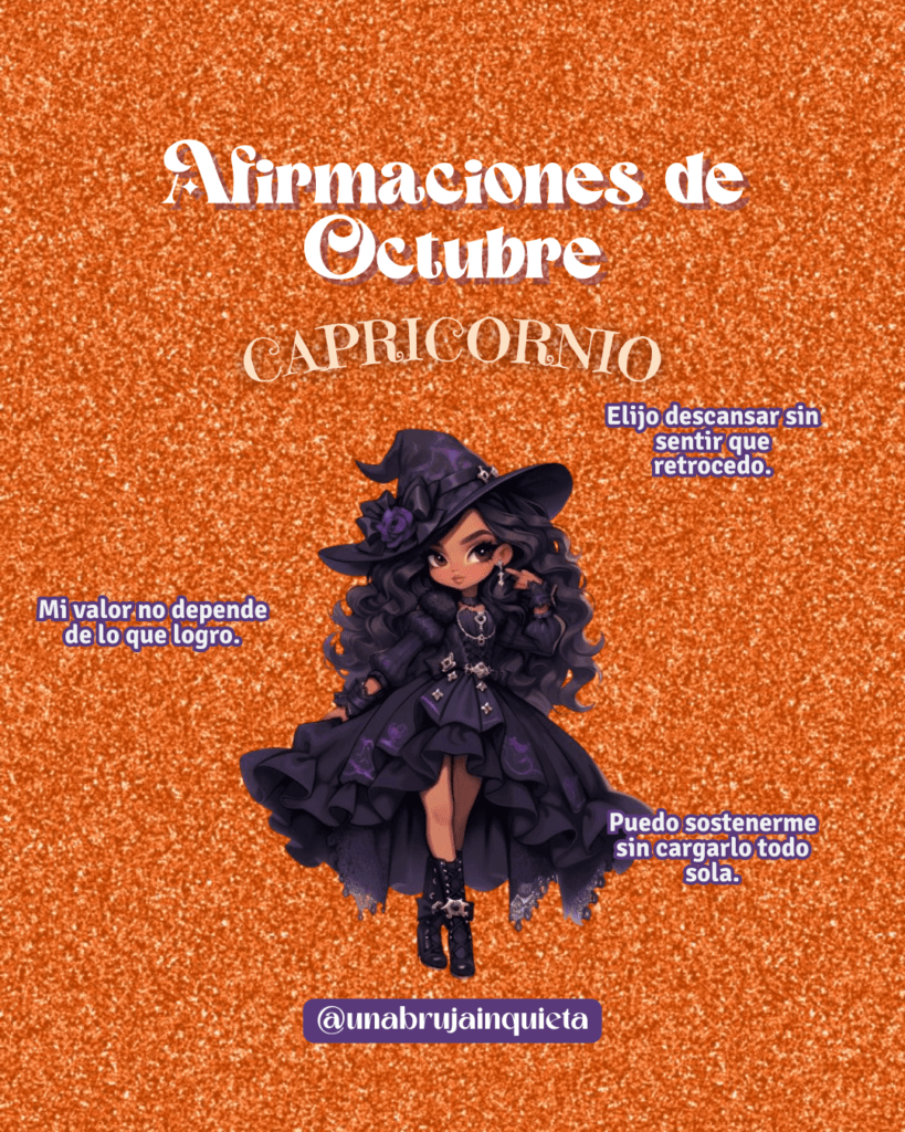 • Capricornio Elijo descansar sin sentir que retrocedo. Mi valor no depende de lo que logro. Puedo sostenerme sin cargarlo todo sola.