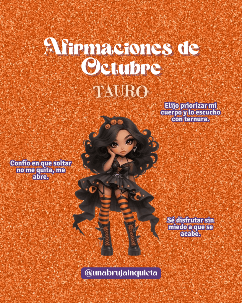 • Tauro Elijo priorizar mi cuerpo y lo escucho con ternura. Confío en que soltar no me quita, me abre. Sé disfrutar sin miedo a que se acabe.