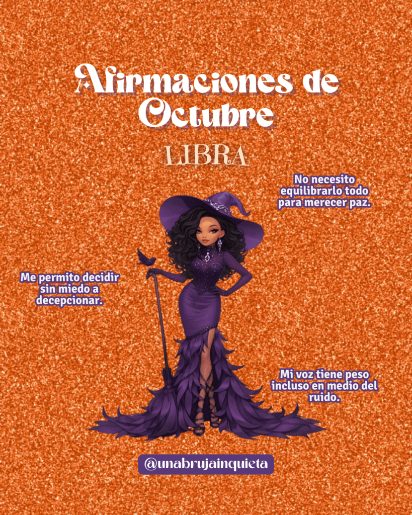 • Libra No necesito equilibrarlo todo para merecer paz. Me permito decidir sin miedo a decepcionar. Mi voz tiene peso incluso en medio del ruido.