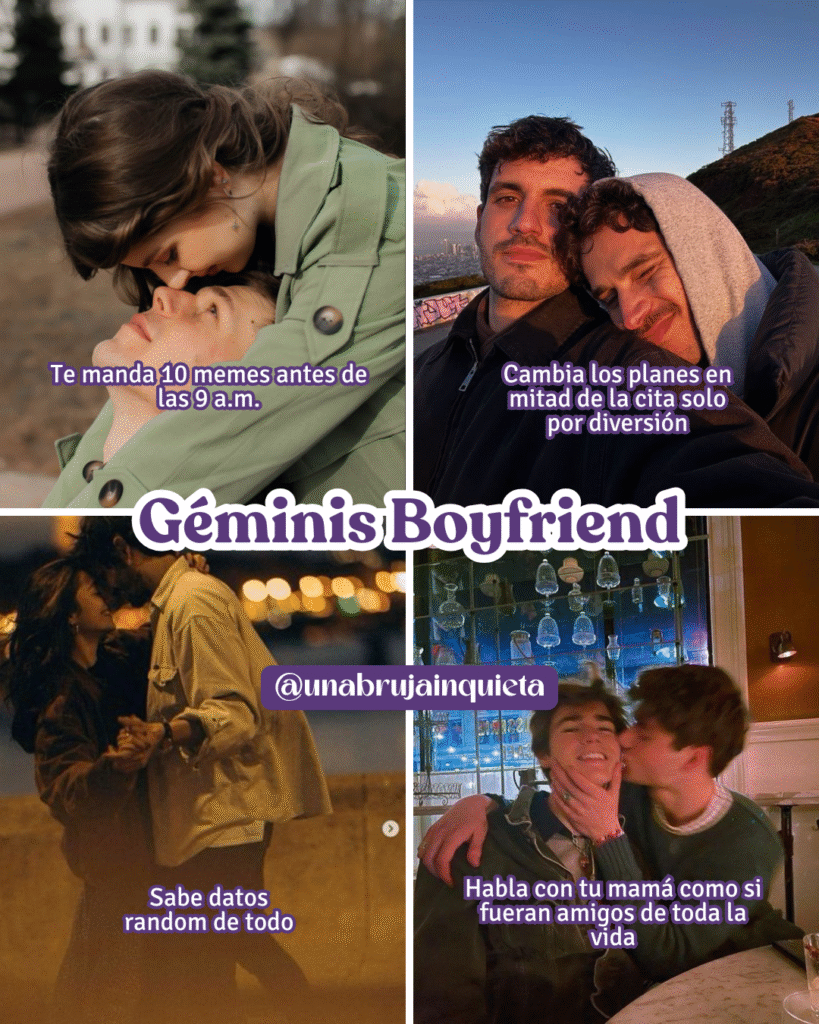 Si tu chico es Géminis, prepárate para despertarte con 10 memes en el celular antes de las 9 a.m. Cambia de planes en medio de la cita solo por diversión, sabe datos curiosos de todo y es capaz de conversar con tu mamá como si fueran amigos de toda la vida. Con él, nunca hay silencios incómodos.