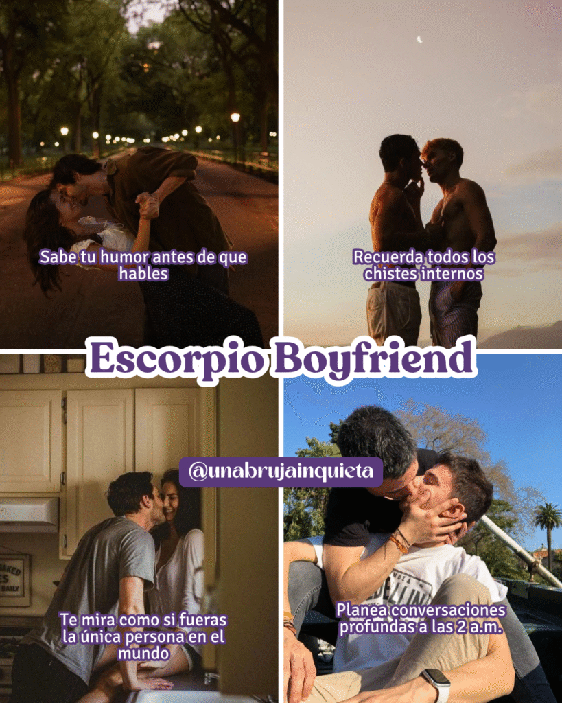 Si tu chico es Escorpio, prepárate para vivir intensamente. Sabe cuál es tu humor incluso antes de que hables, recuerda todos los chistes internos y te mira como si fueras la única persona en el mundo. Además, es capaz de planear conversaciones profundas a las 2 a.m. que terminan cambiando tu manera de ver las cosas.