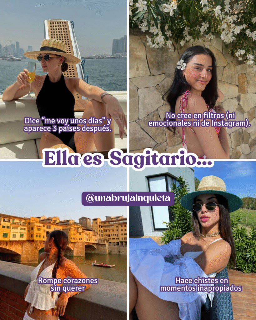 Ella es libertad con sentido. No se trata solo de viajar y reír, sino de buscar constantemente un horizonte que la haga crecer. Su energía es contagiosa y su risa, medicina. Su curiosidad es infinita, porque cada experiencia es una excusa para filosofar, cuestionar y volver a empezar.