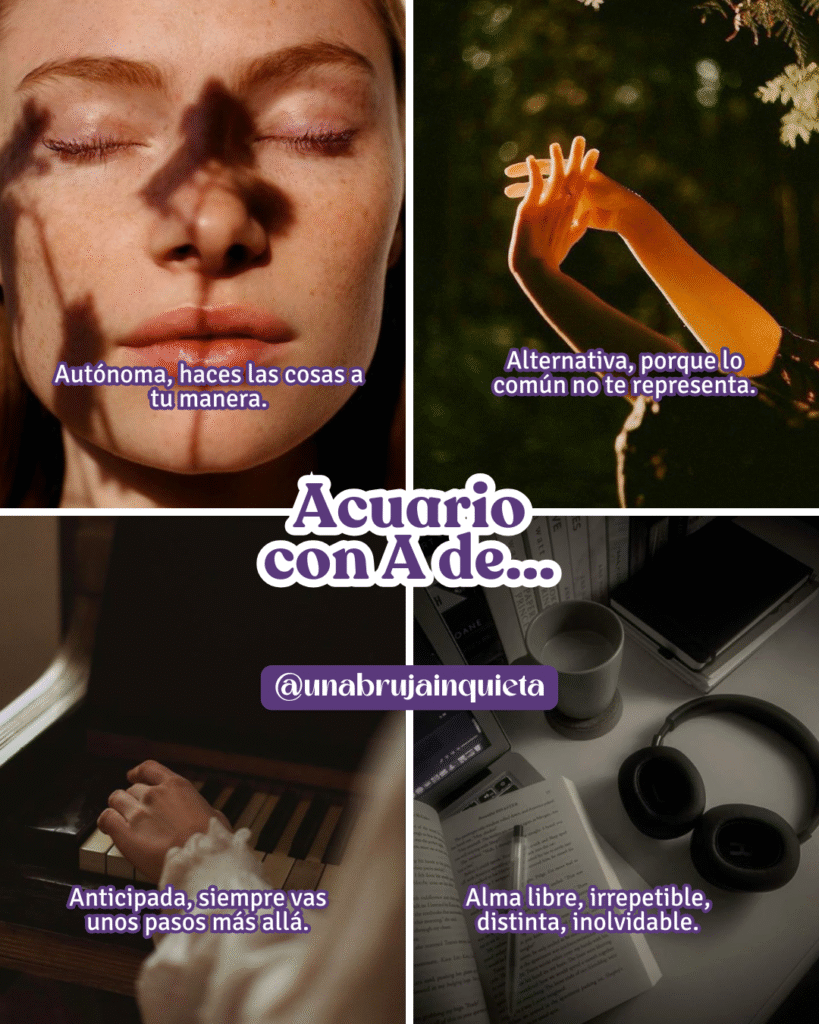 Autónoma, porque siempre haces las cosas a tu manera. Alternativa, porque lo común nunca te ha representado. Anticipada, siempre un paso más allá. Alma libre, irrepetible y única. Acuario es cambio, innovación y futuro hecho presente.