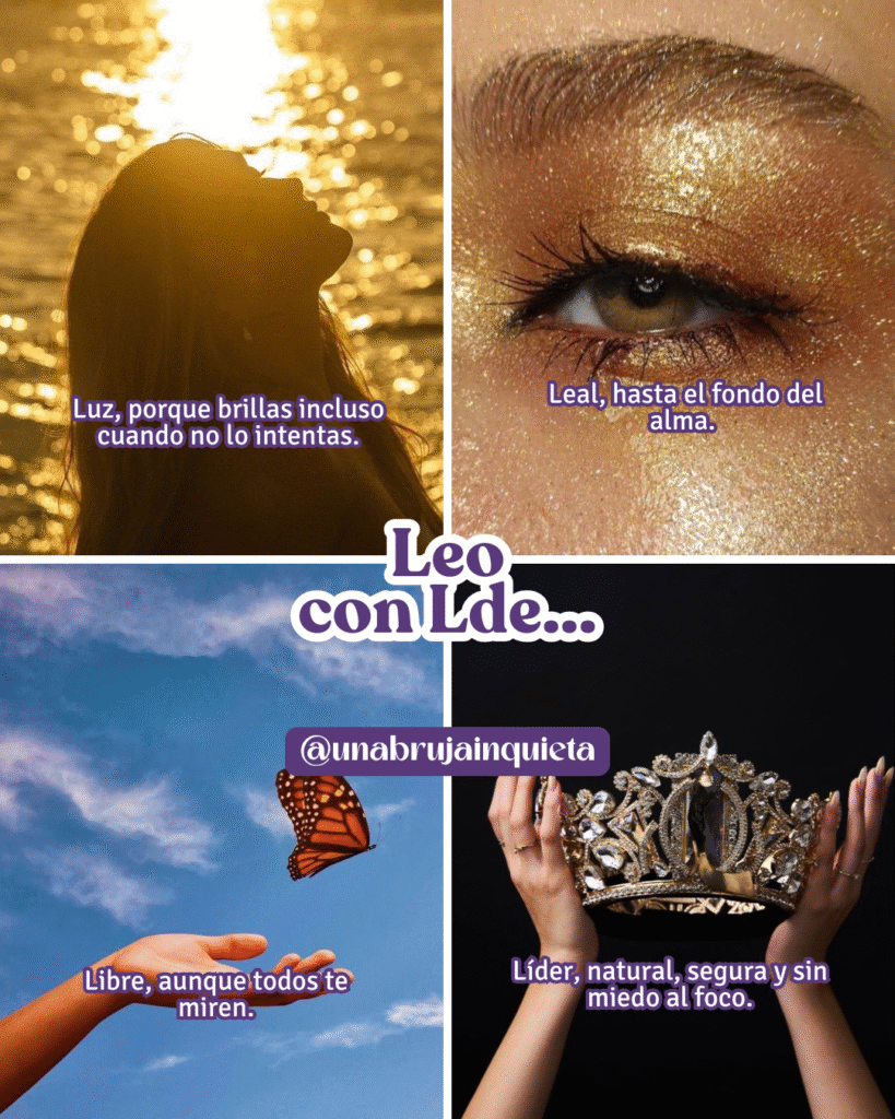 Luz, porque brillas incluso sin intentarlo. Leal, hasta el fondo del alma. Libre, aunque todos te miren. Líder, segura y sin miedo al foco. Leo es el sol que calienta, inspira y nunca pasa desapercibido.
