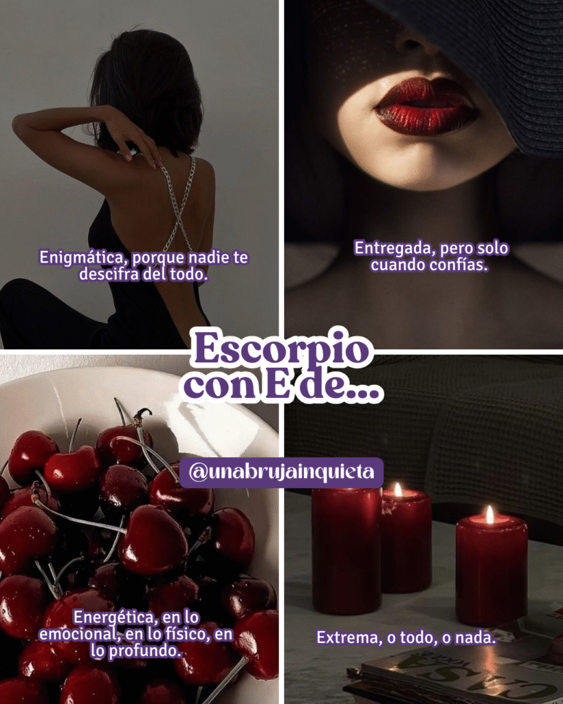 Enigmática, porque nadie te descifra del todo. Entregada, pero solo cuando confías de verdad. Energética, emocional, intensa y apasionada. Extrema: o todo, o nada. Escorpio es la transformación hecha persona.