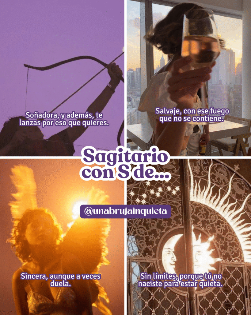 Soñadora, pero también valiente para lanzarte. Salvaje, con ese fuego indomable. Sincera, aunque a veces duela. Sin límites, porque naciste para expandirte. Sagitario es libertad, optimismo y aventura sin final.