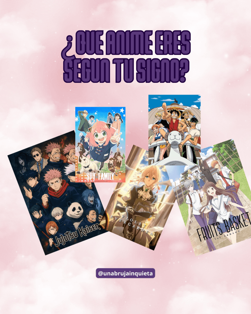 - Libra: PRINCESS JELLYFISH (Kuragehime) Justicia, glitter y buenas intenciones: tu fórmula. Tú eres la guerrera del amor, la amiga que escucha, la persona que ve la luz aun en los días más raros. Tu vibra es estética, diplomacia y encanto natural. No necesitas pelear: tu encanto resuelve el 70% de tus problemas.