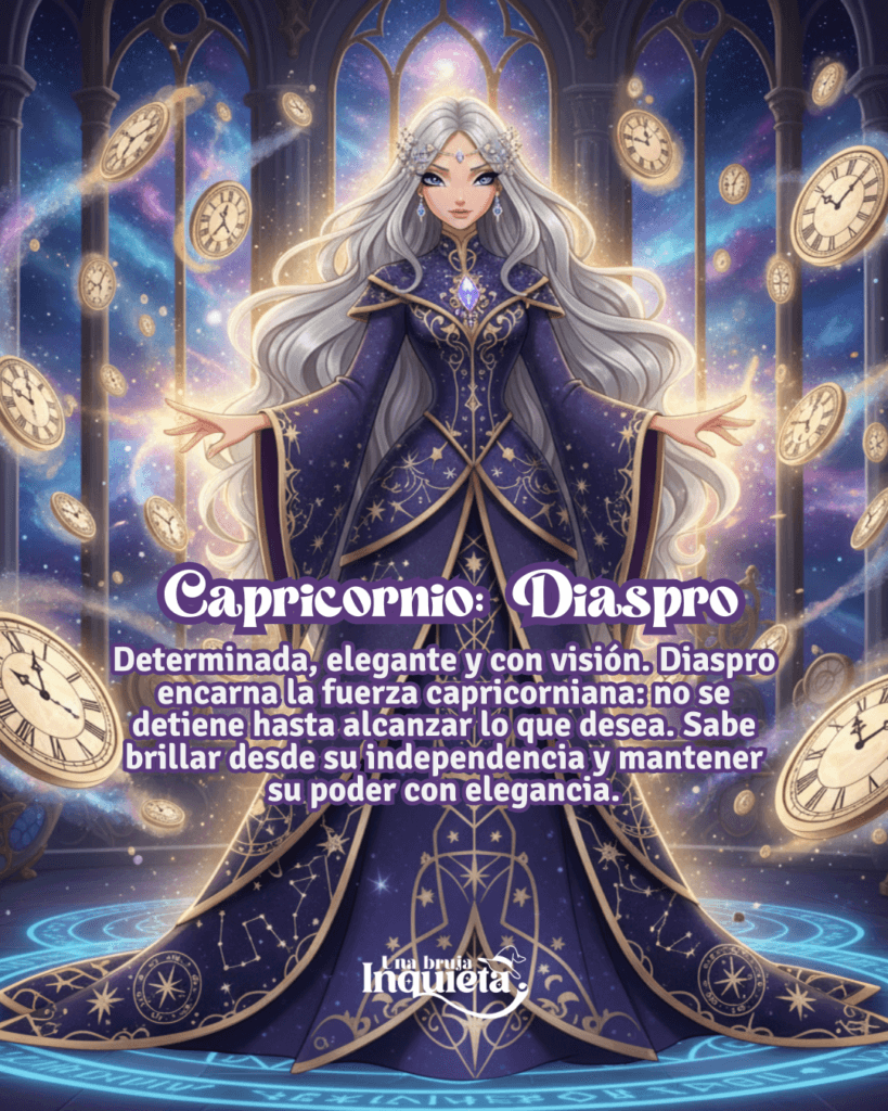 - Capricornio: Diaspro Determinada, elegante y con visión. Diaspro encarna la fuerza capricorniana: no se detiene hasta alcanzar lo que desea. Sabe brillar desde su independencia y mantener su poder con elegancia.