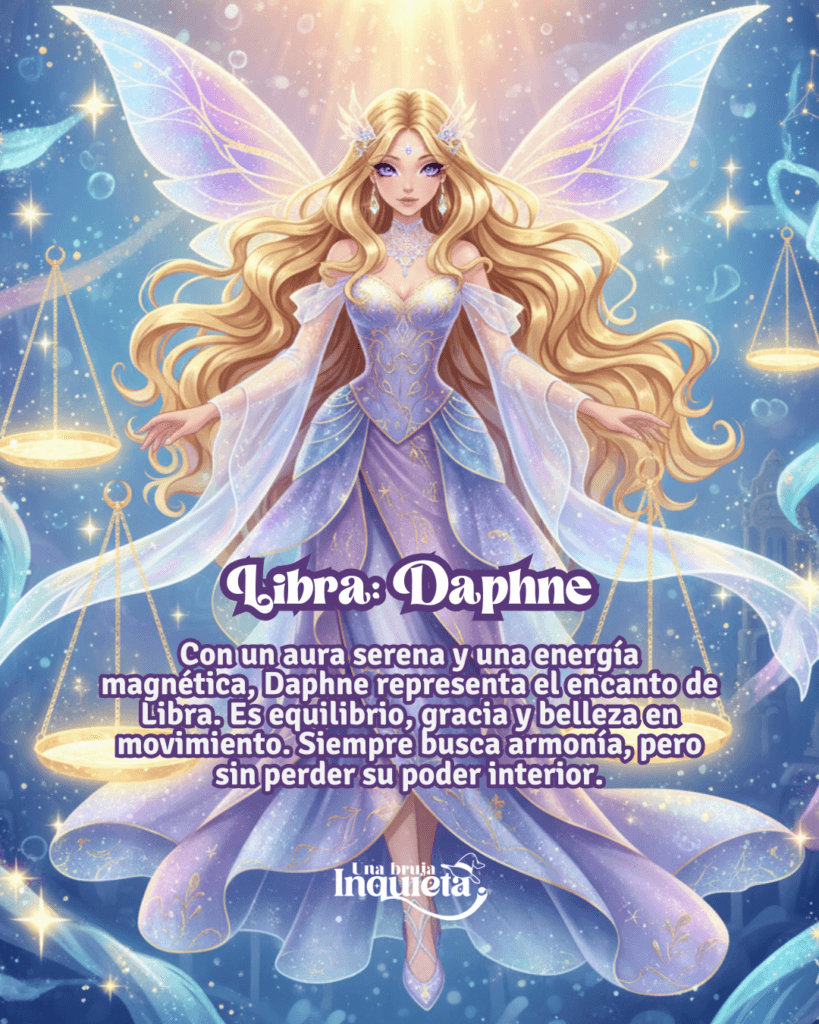 - Libra Daphne Con un aura serena y una energía magnética, Daphne representa el encanto de Libra. Es equilibrio, gracia y belleza en movimiento. Siempre busca armonía, pero sin perder su poder interior.