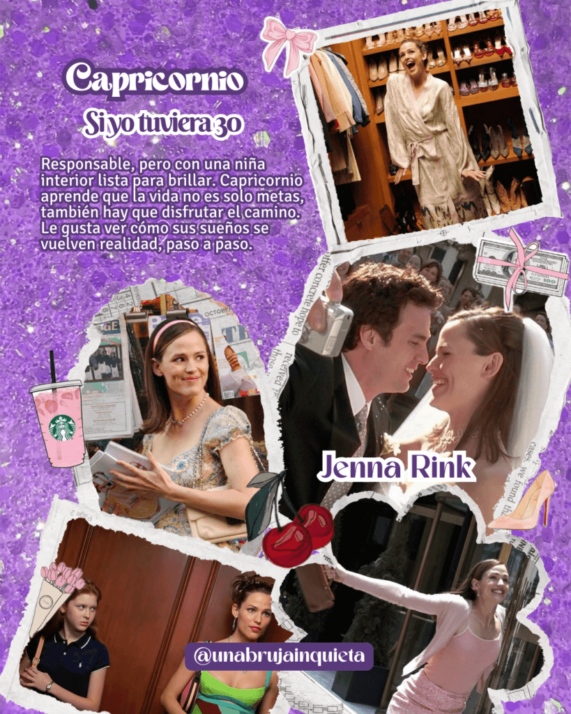 - Capricornio: (Si yo tuviera 30) Responsable, pero con una niña interior lista para brillar. Capricornio aprende que la vida no es solo metas, también hay que disfrutar el camino. Le gusta ver cómo sus sueños se vuelven realidad, paso a paso.