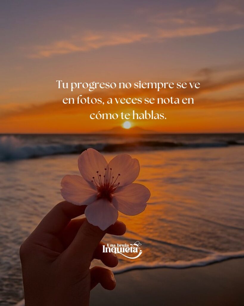 - Progreso Silencioso: «Tu progreso no siempre se ve en fotos, a veces se nota en cómo te hablas».